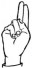 На ћирилици написано АНДРИЈА МИСКИН састоји се из 13 слова [?]. Исписано ћириличном једноручном азбуком за глувонеме:
